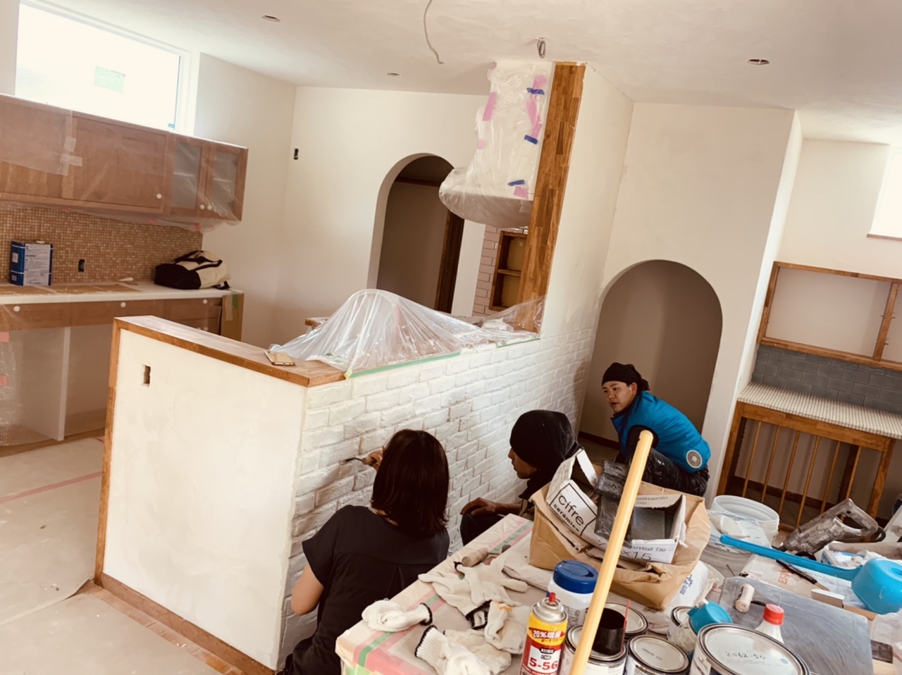 南庄の工事中の現場は、内部の漆喰塗りが終わり 仕上げの漆喰スタンプ施工に先日立ち会って来ました。